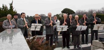 納富寿童翁 墓参 献笛 ![]() 十数名で三谷菅垣の献笛 |