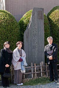 童門碑の前で![]() 南雲州童氏、遺族 |