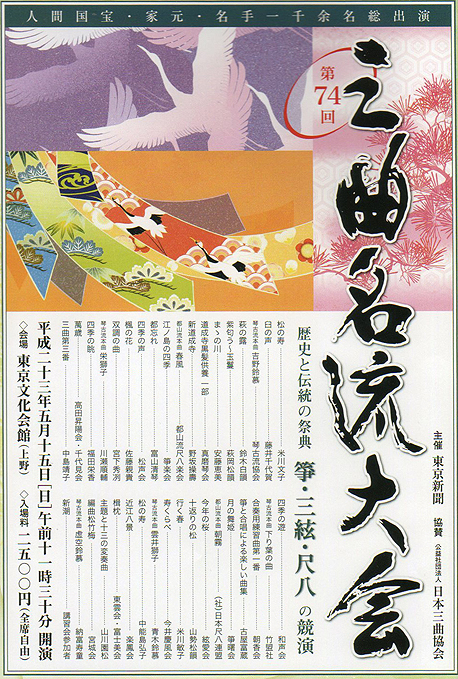 | 演奏曲 独奏者 1.近江八景 中谷 浩子 2.松上の鶴 井川 元幸 3.都の春 鈴木 賞樹 4.鐘ヶ岬 栗原 有童 5.須磨の嵐 村瀬 剛童 6.桜狩 手塚 雄童 7.江の島 鈴木 體カ 8.都の春 五月女調童 9.鶴寿千歳 中尾 志童 10.須磨の嵐 川津 征童 |